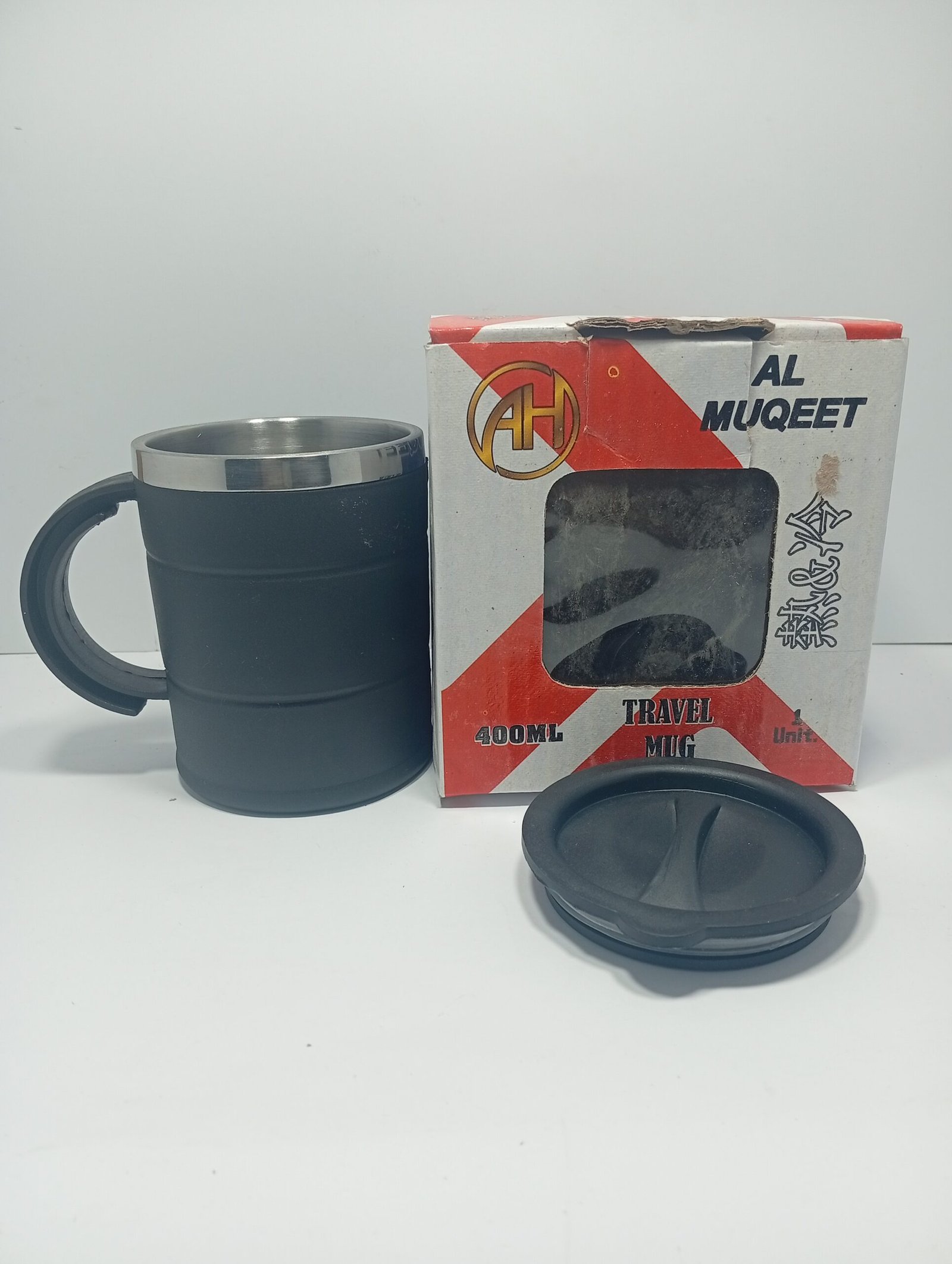 Coffee Mug With Air Tight Lid 400ml – Black Stainless Steel Travel Mug With Handle (Karachi)
