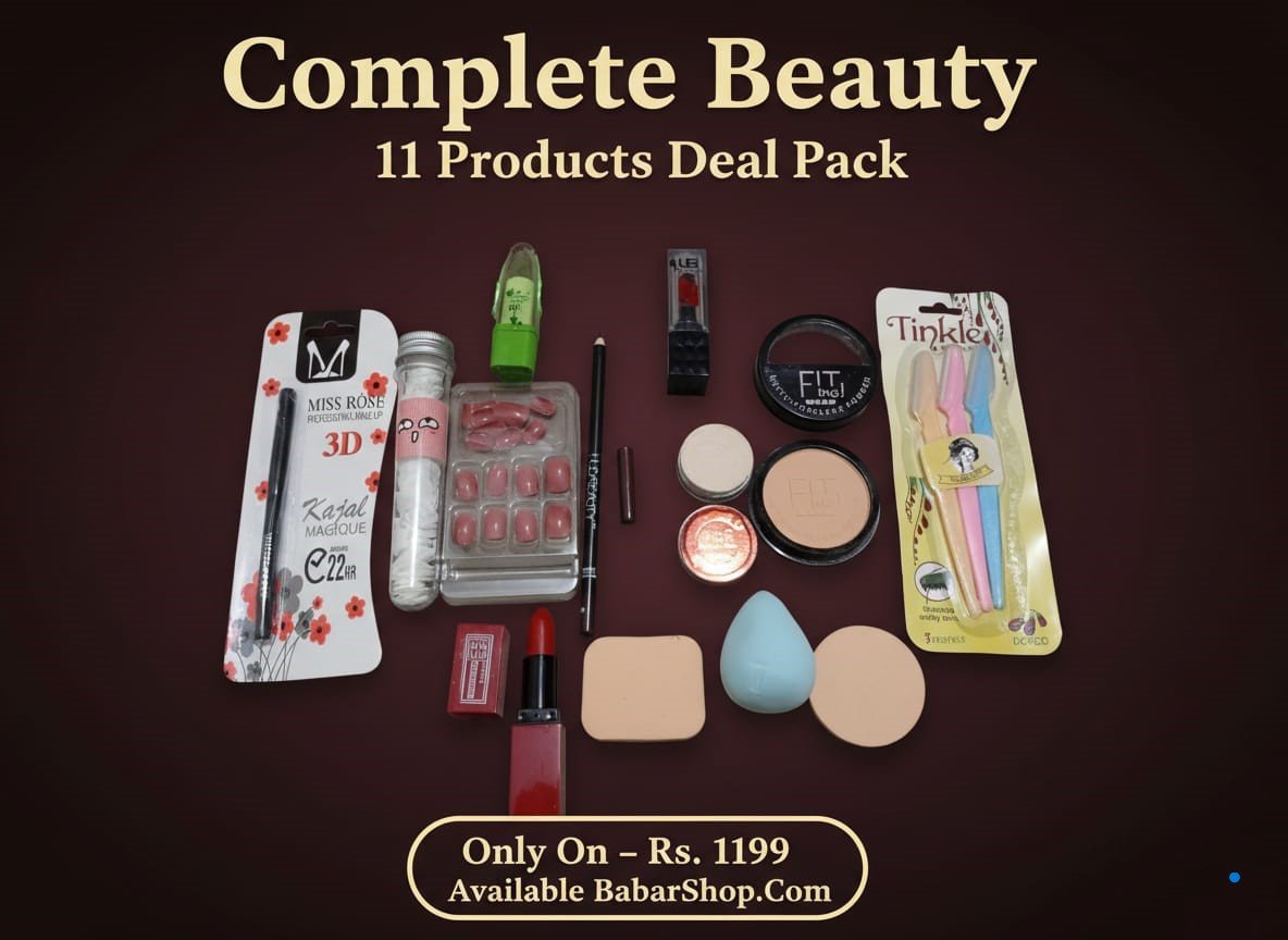 Babar Shop ka ye Complete Beauty Deal Pack 11 Products Deal Pack makeup lovers ke liye ek perfect all-in-one combo hai. Face, eyes, lips aur nails ke liye zaroori 11 cosmetic items ek hi affordable deal mein — Karachi mein fast delivery ke sath.