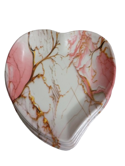 Heart Shape Serving Trays Set – Premium Marble Design Melamine (Pack of 3)
