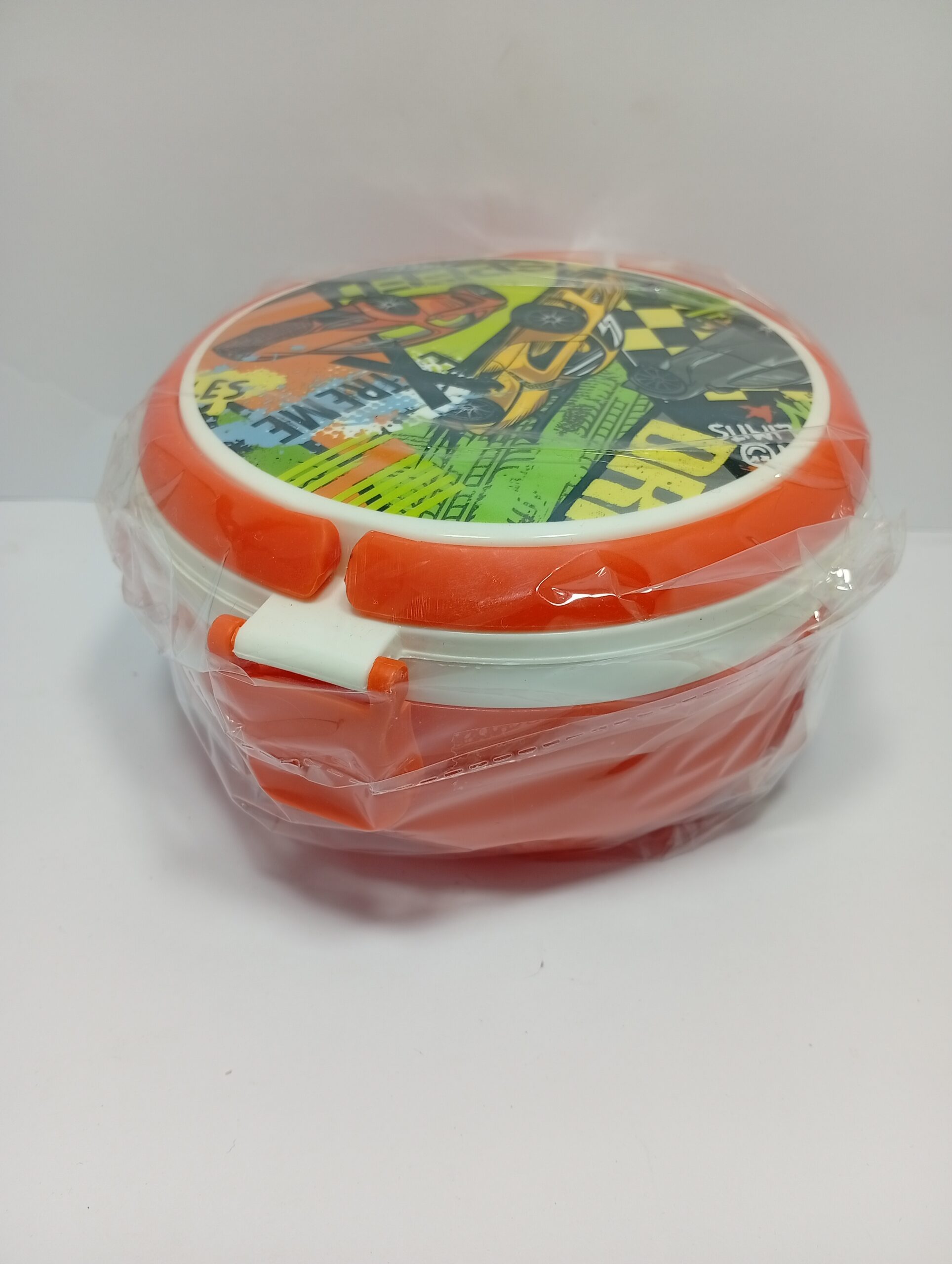 Buy Kids Car Design Lunch Box for School. Durable plastic, tight lock & attractive racing car theme. Best school lunch box for boys. Order now!