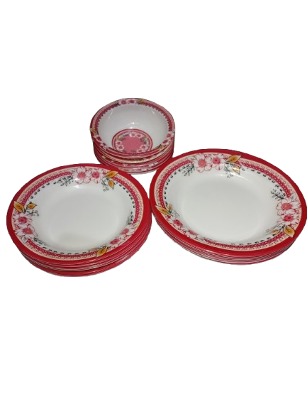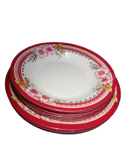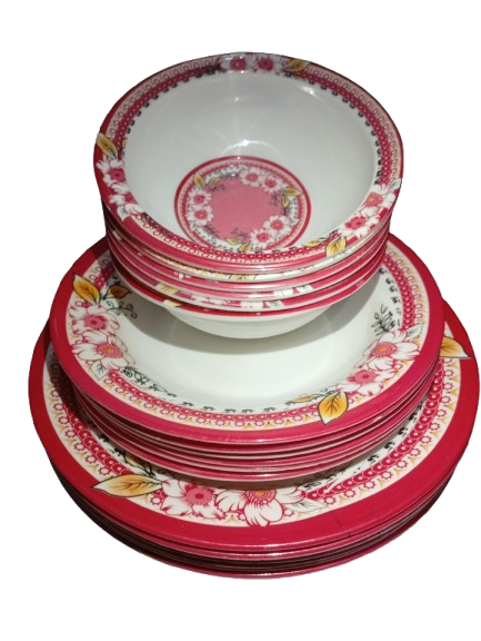 Agar aap Karachi mein premium quality melamine dinner set dhoondh rahe hain, to yeh 18 pieces floral melamine dinner set aap ke liye perfect choice hai. Is dinner set ka elegant red floral design aapke dining table ko classy look deta hai, chahe daily use ho ya guests ke liye.