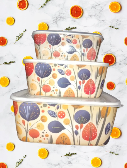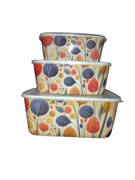The containers feature a modern printed design that looks clean and elegant on kitchen racks or inside the refrigerator. Thanks to the secure & tight-fit lids, your food stays safe from air, moisture, and spills — ideal for storing cooked meals, leftovers, snacks, fruits, or dry items.