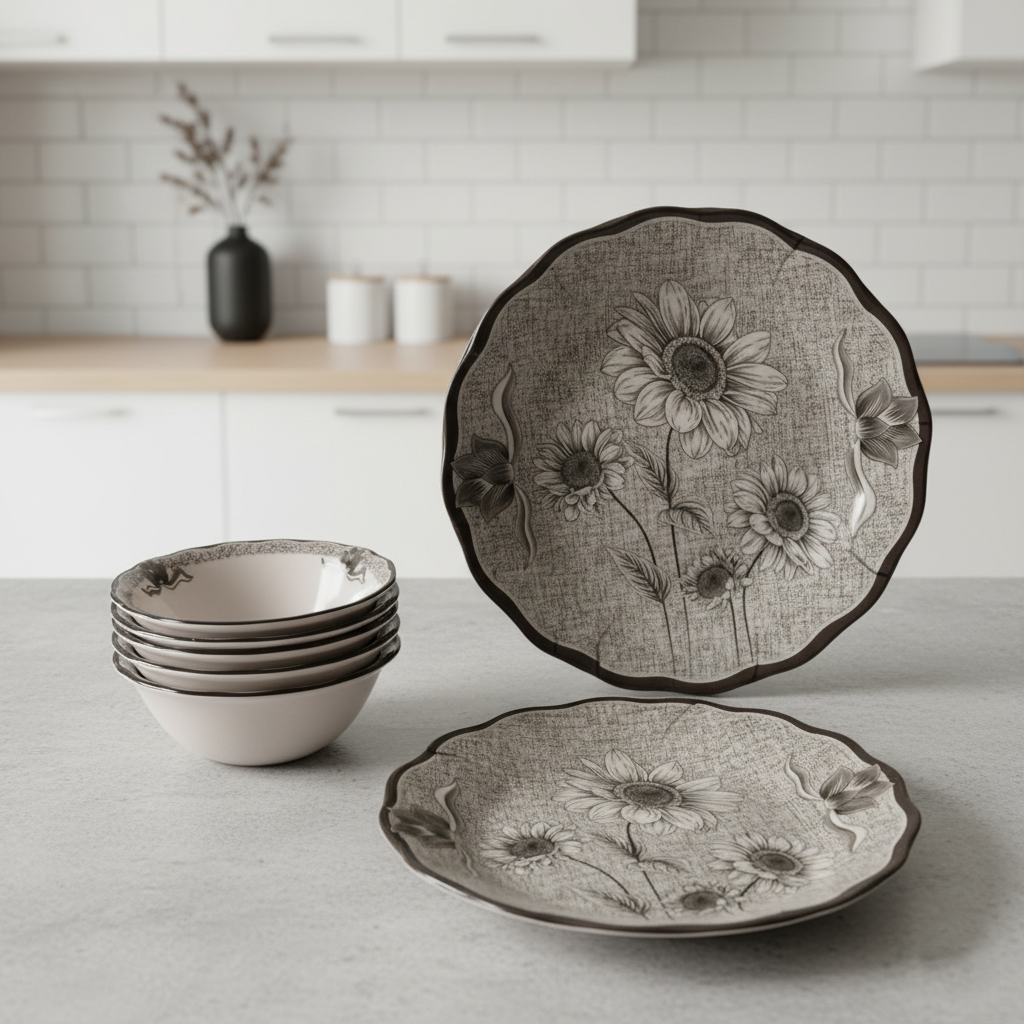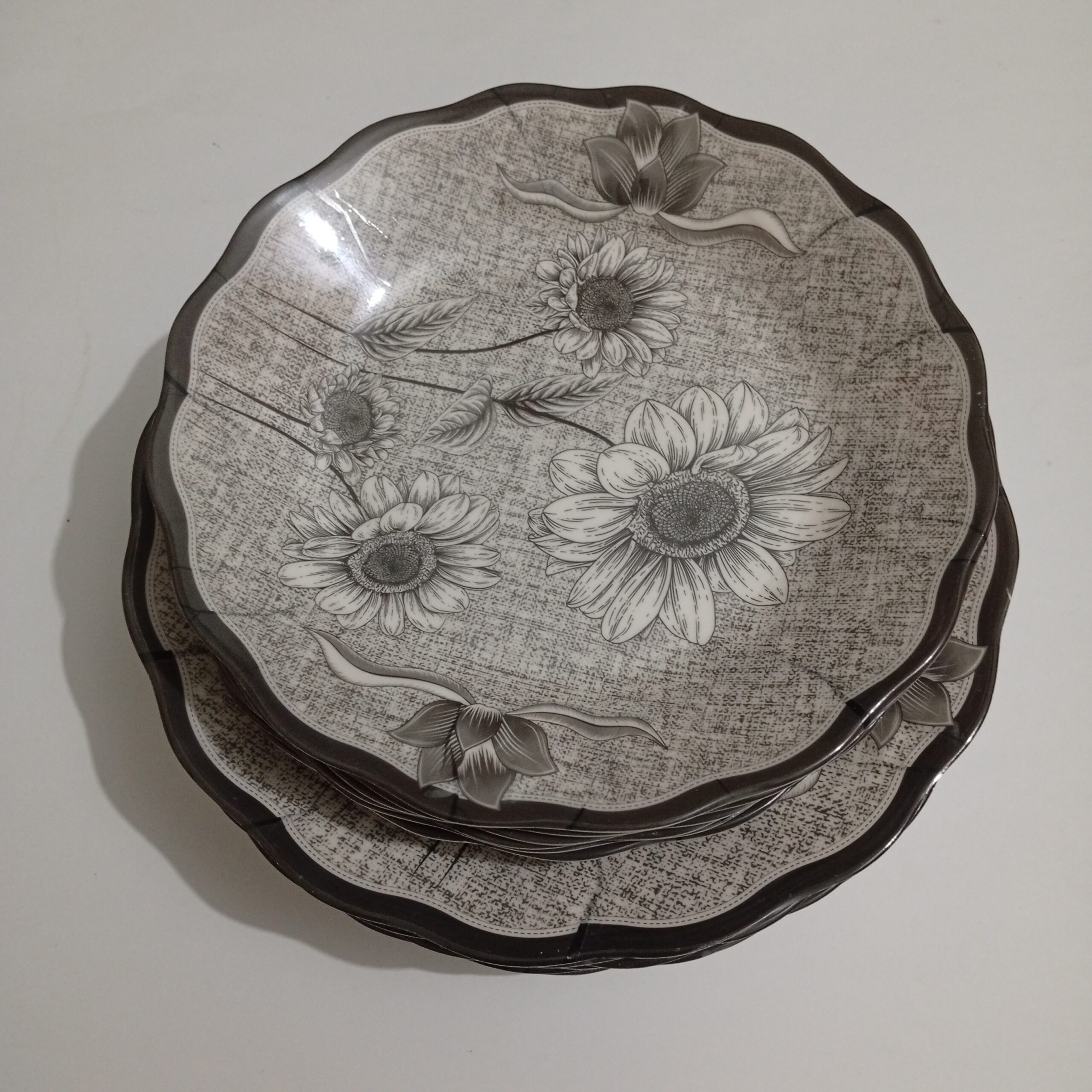 Melamine Dinner Set 18 Pieces – Elegant Floral Design (Grey)