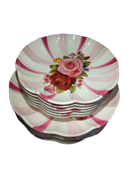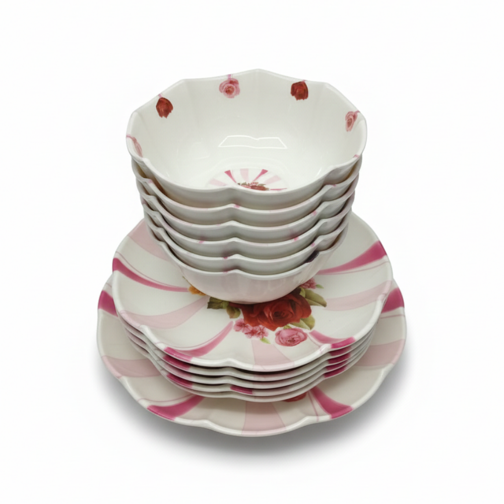 Add beauty and elegance to your dining table with this 18-piece melamine dinner set featuring a fresh flower design in attractive red & pink colours. Perfect for small families, daily meals, and casual gatherings, this set combines style, durability, and practicality.