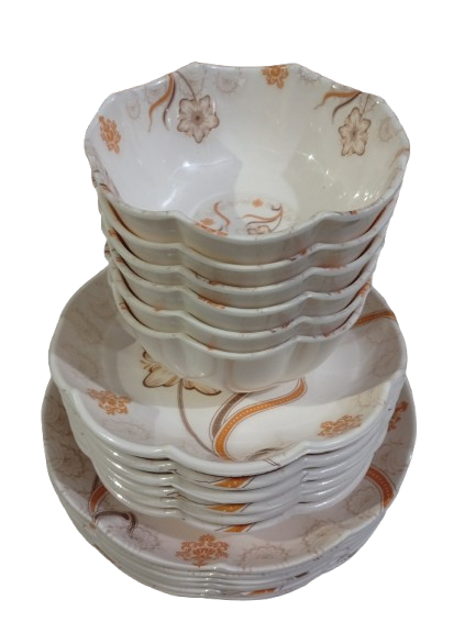 Melamine Dinner Set 18 Pieces (6 Medium Plates, 6 Small Plates, 6 Bowls) | Karachi