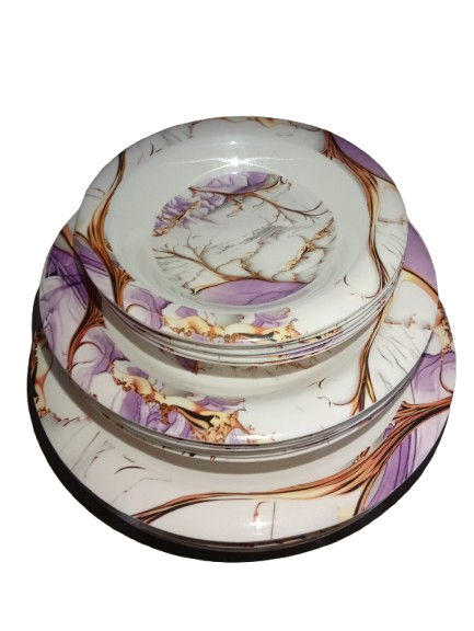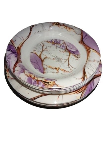 Bring a modern and luxurious touch to your dining table with this Melamine Dinner Set 18 Pieces Purple Marble, designed in a unique purple marble pattern with artistic vein detailing. This elegant crockery set is perfect for Karachi households looking for stylish, durable, and practical dinnerware for daily use and special occasions.
