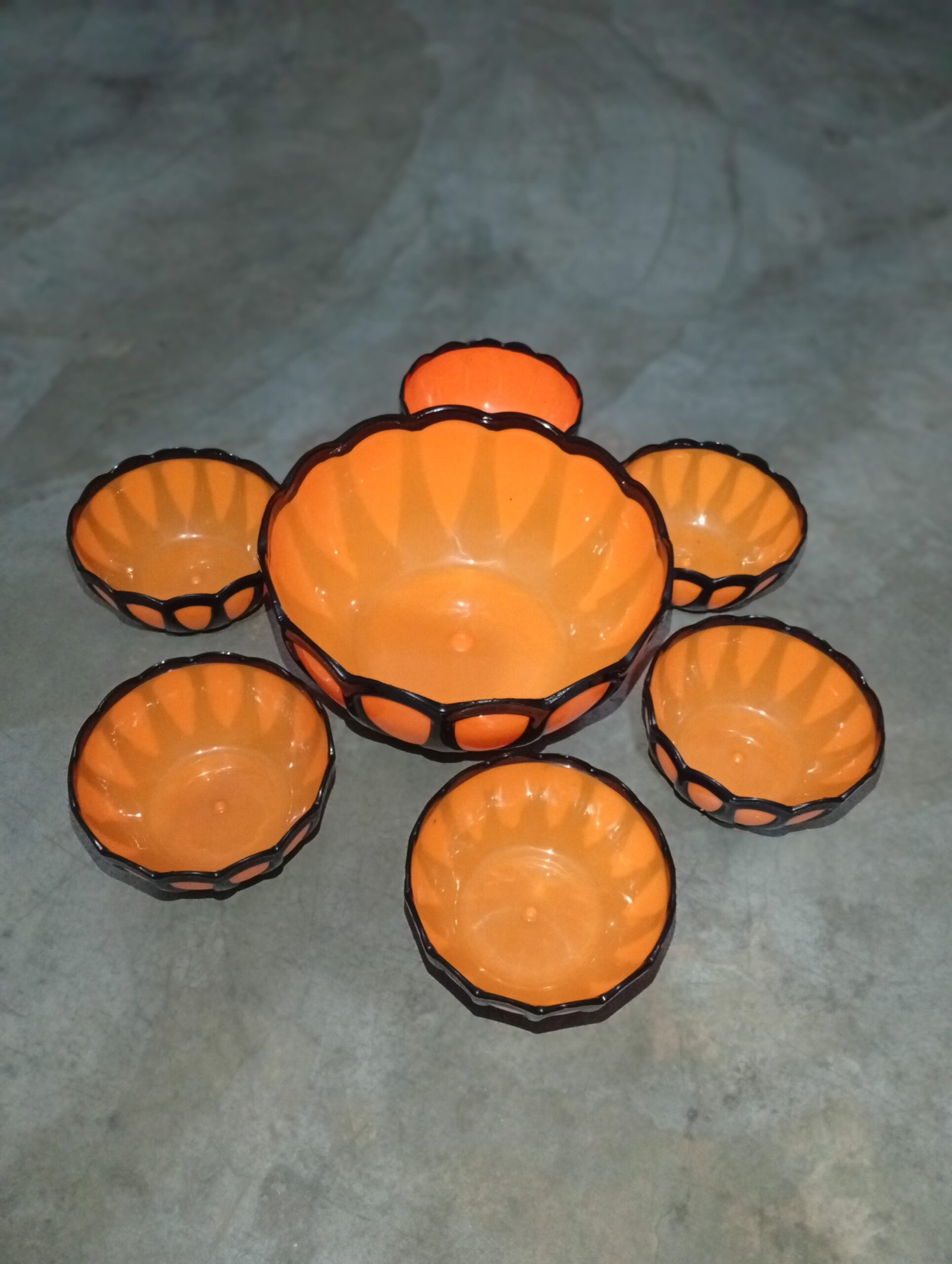 Plastic Bowl Set – Orange Color (6 Pcs + 1 Large Bowl)