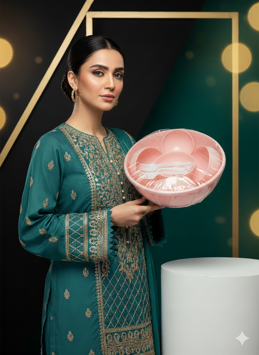 Plastic Bowl Set with Cutlery – 19 Pieces | Karachi