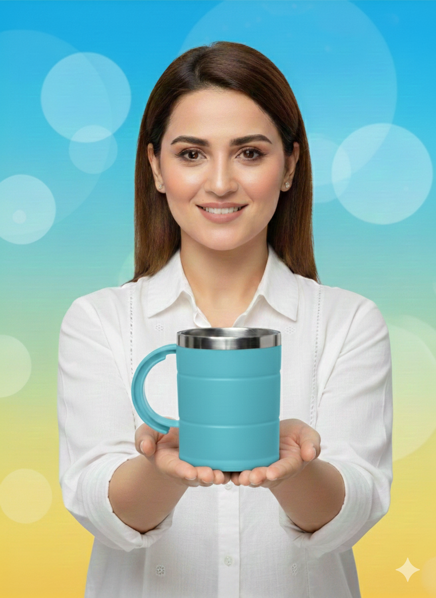 Coffee Mug With Air Tight Lid 400ml | Stainless Steel Travel Mug Karachi