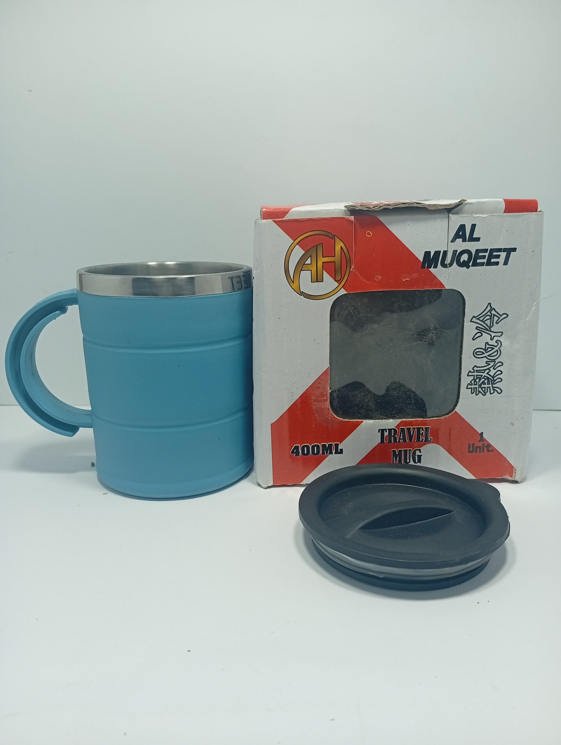 Buy coffee mug with air tight lid 400ml in blue color. Stainless steel travel mug with handle, leak proof lid & fast delivery in Karachi.
